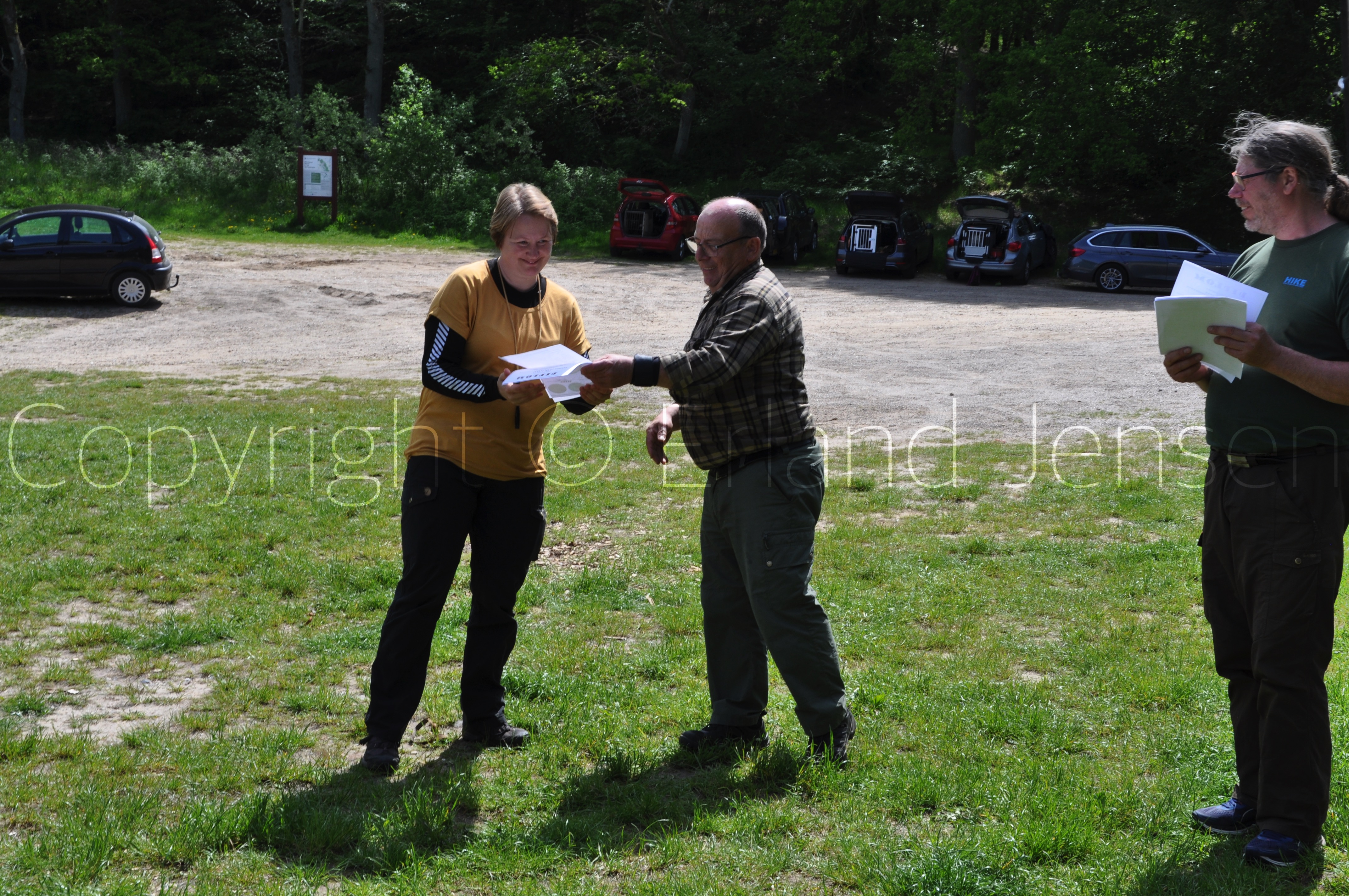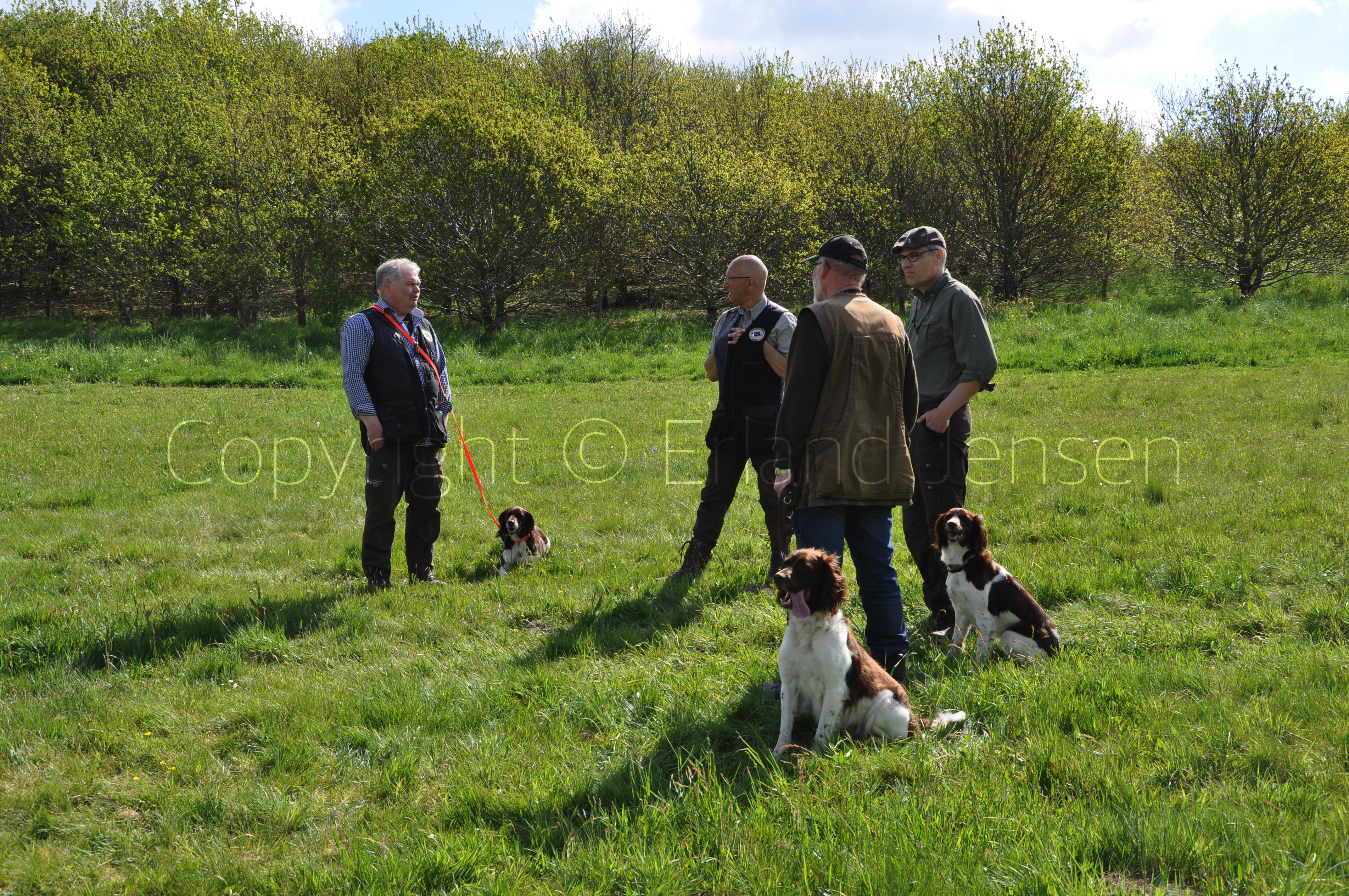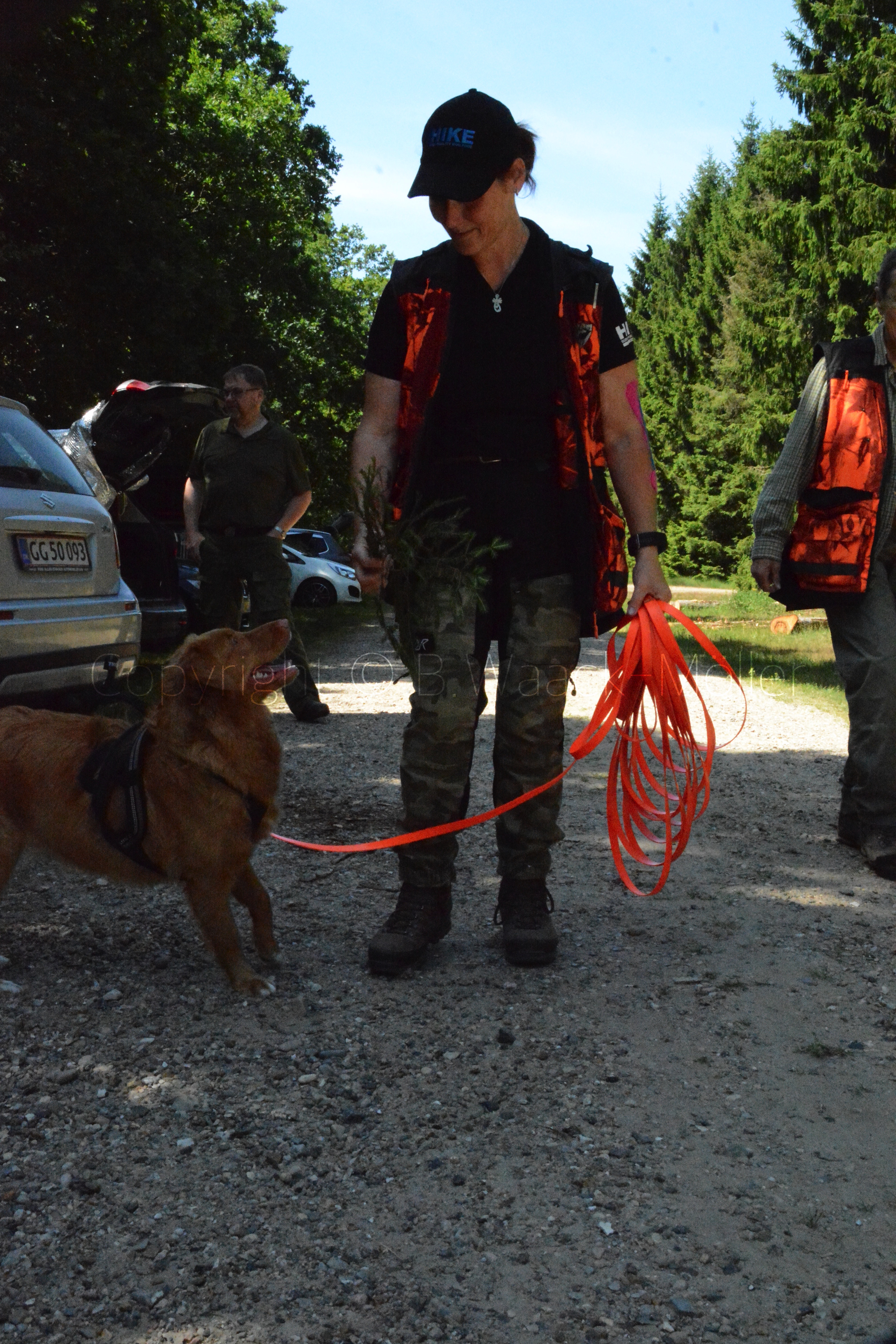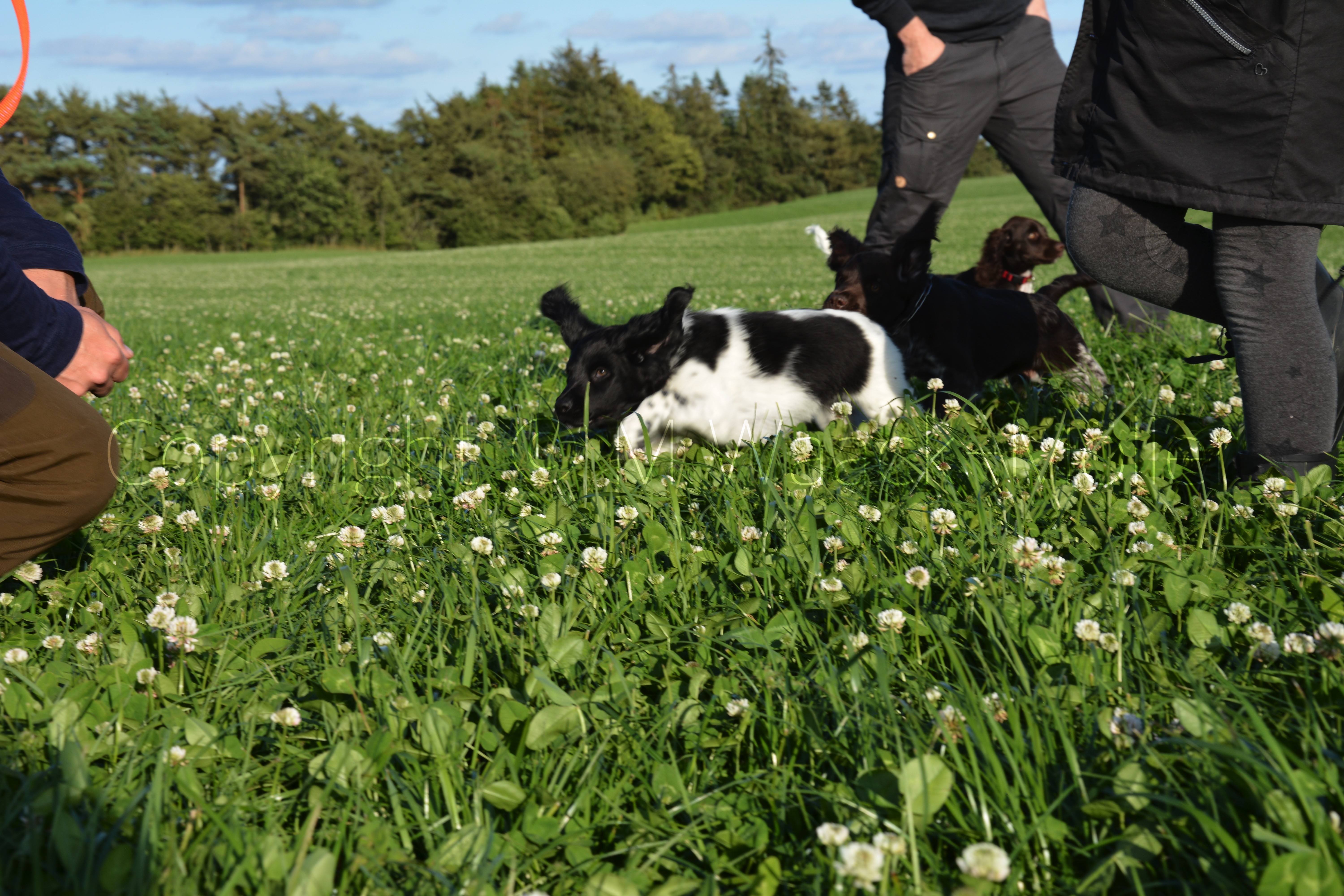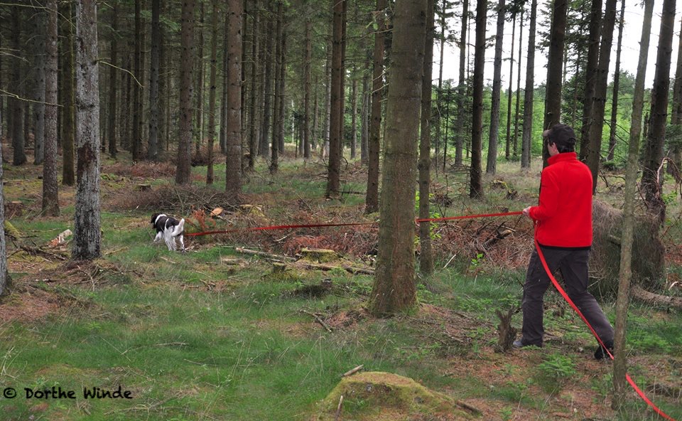 Hunde og fører på vej ud til de forskellige øvelser