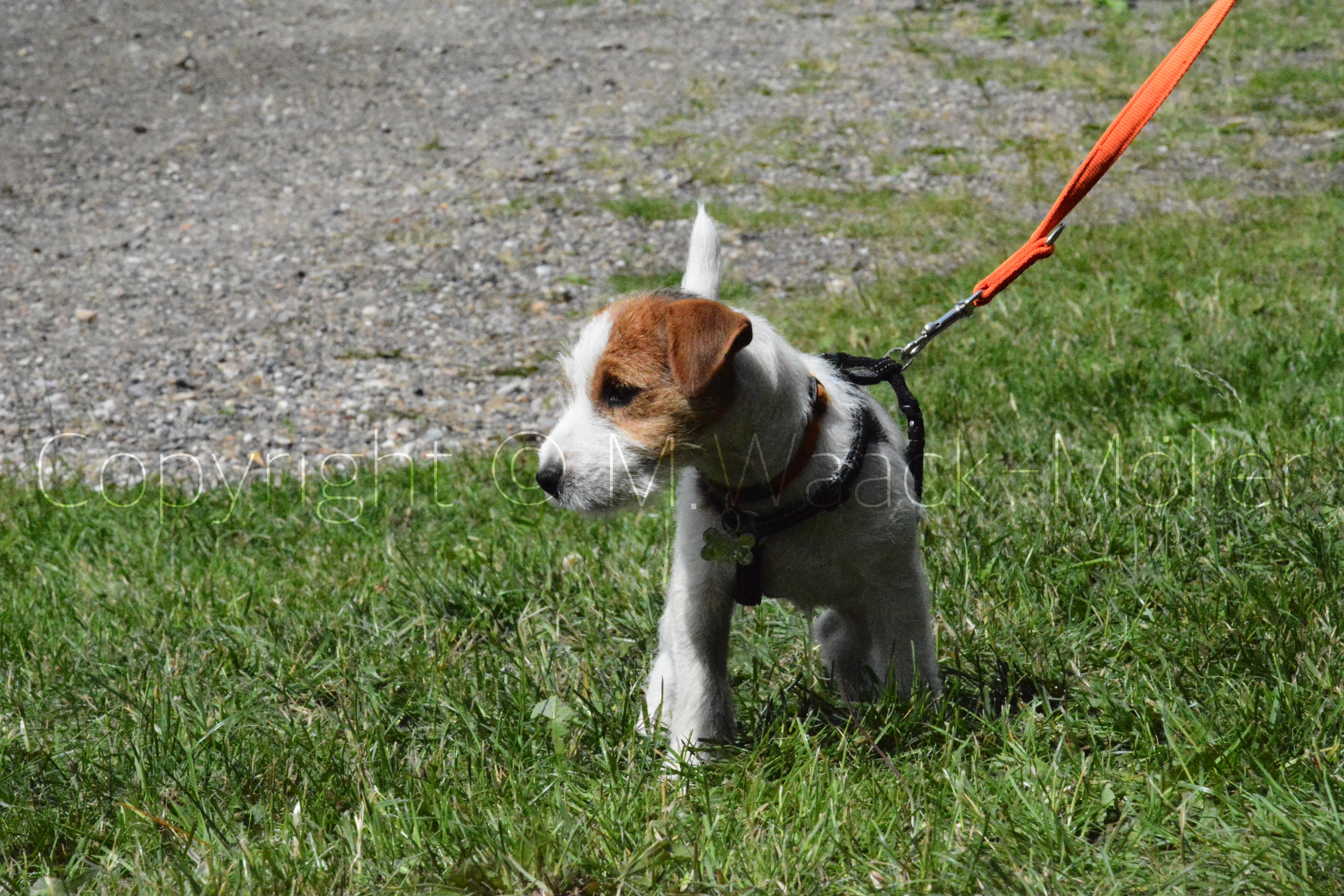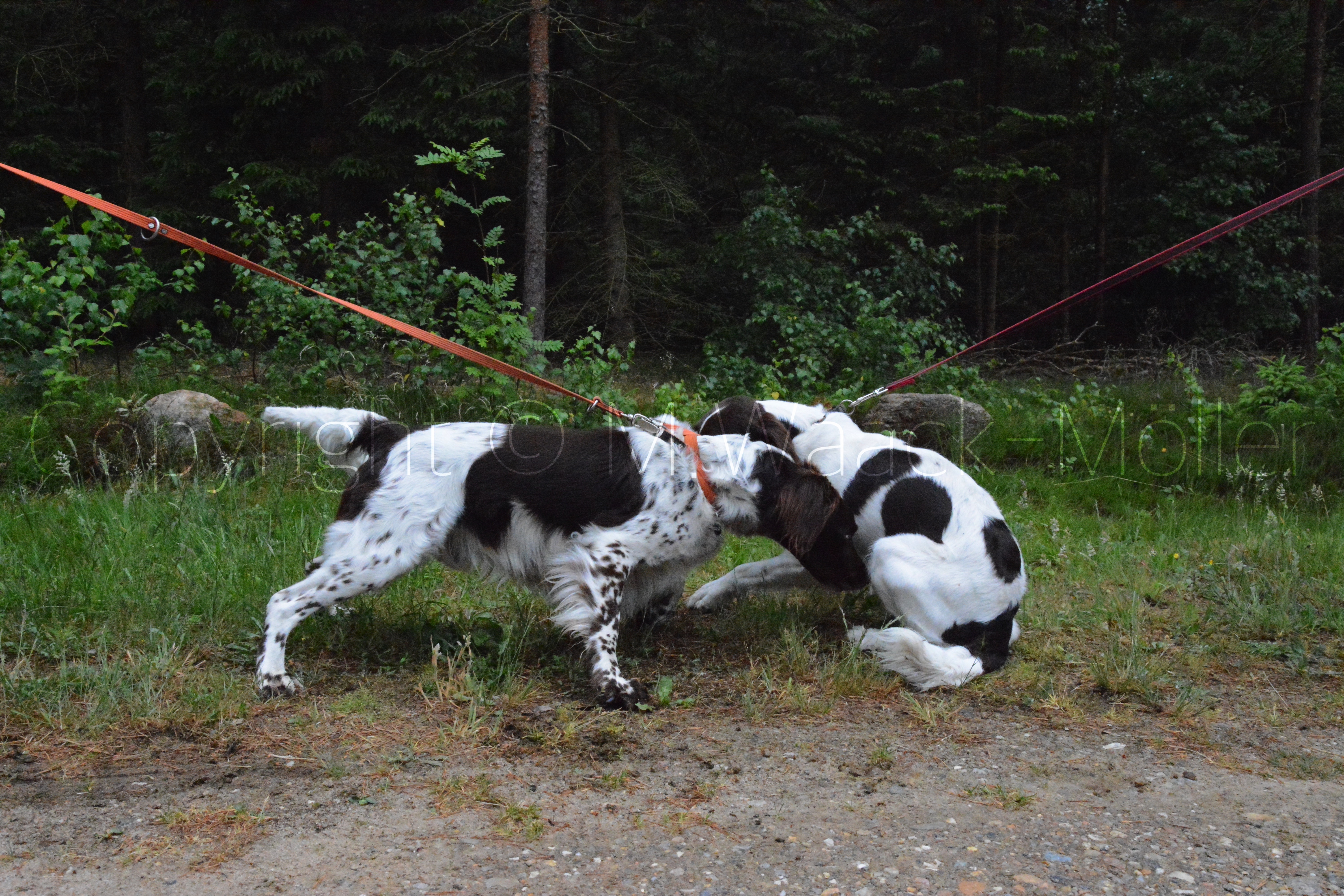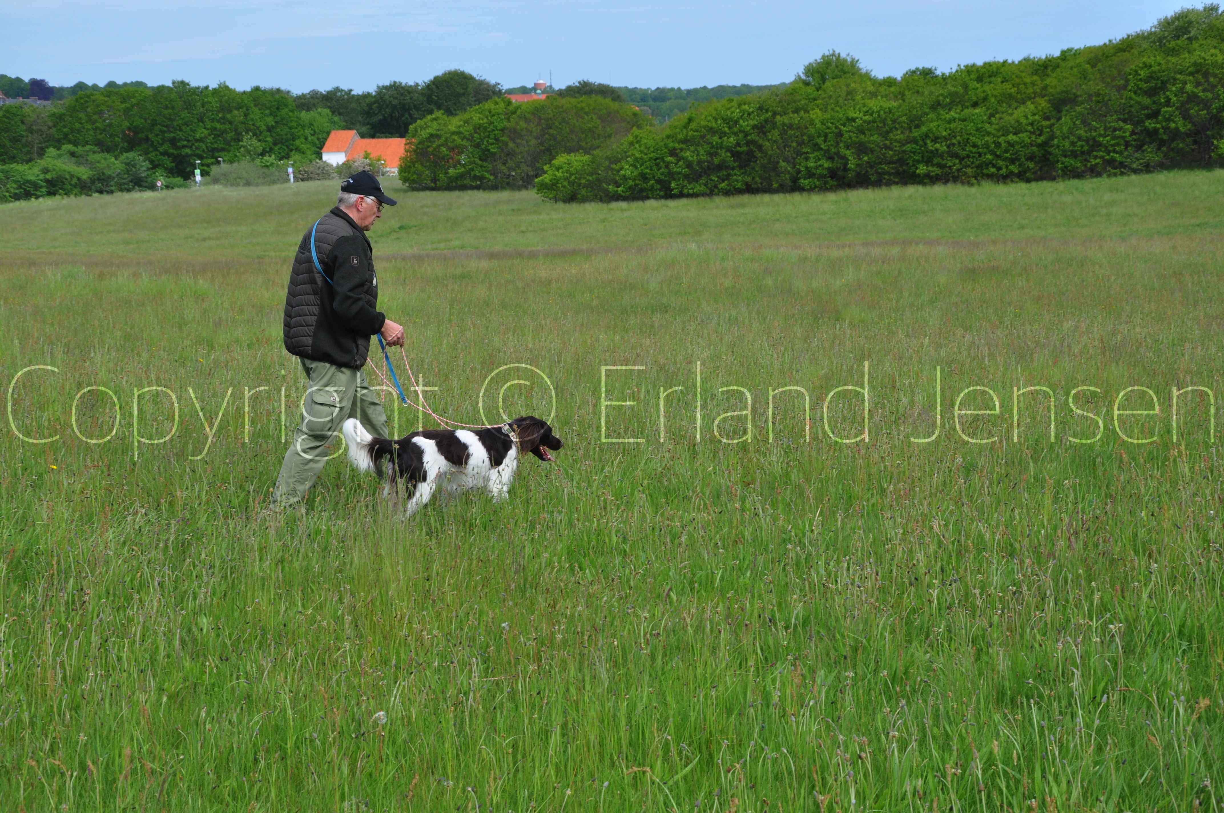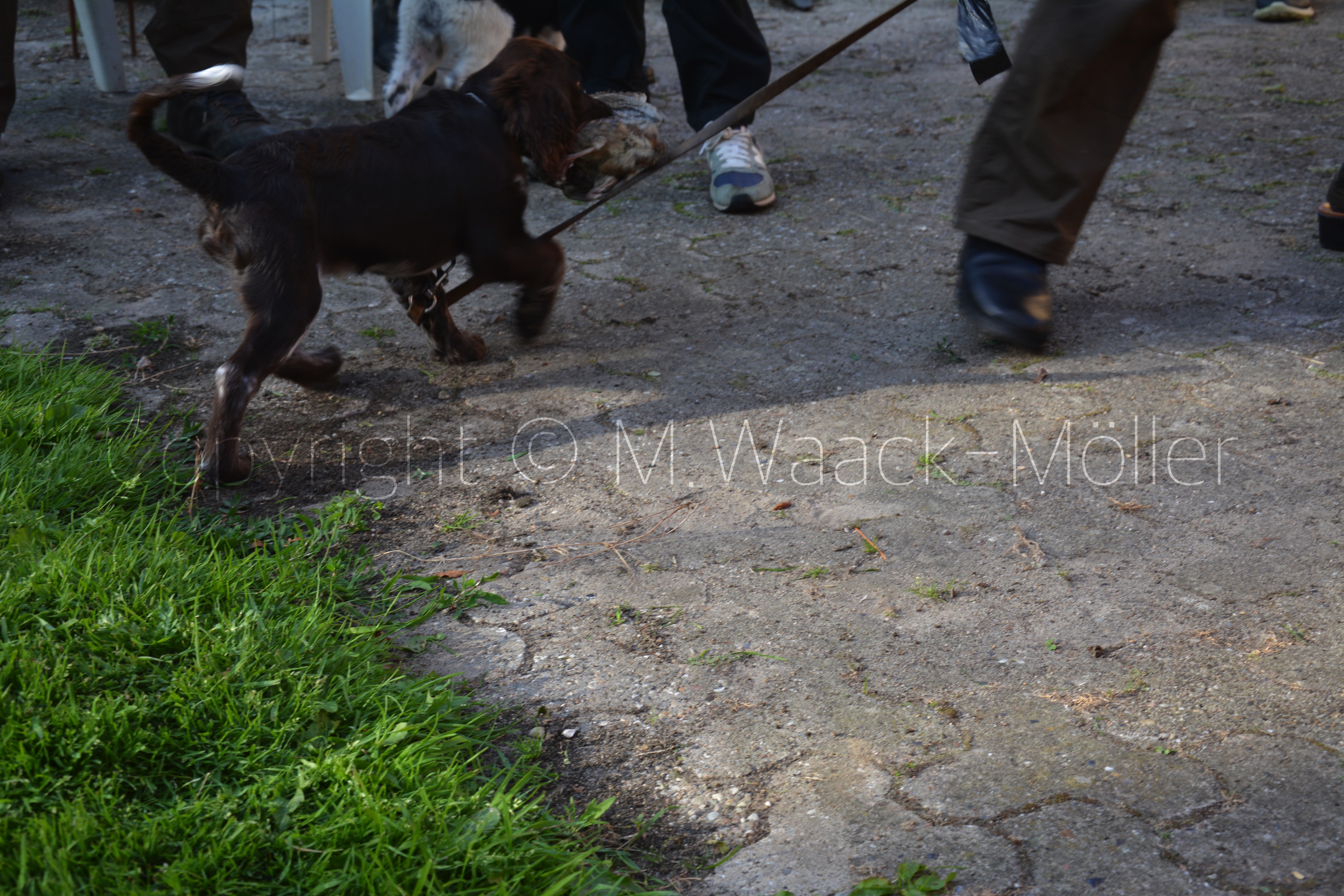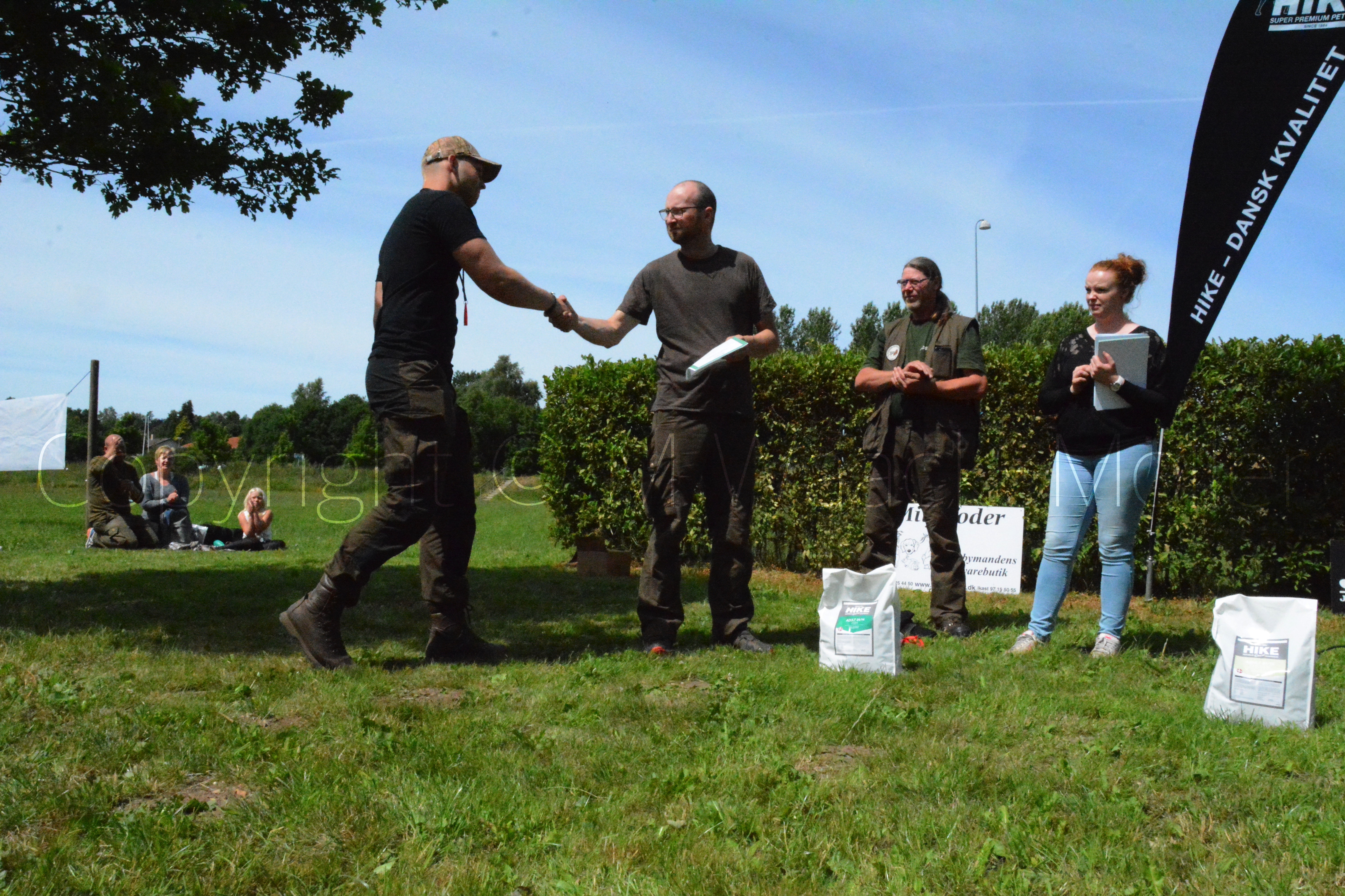Hunde og fører på vej ud til de forskellige øvelser